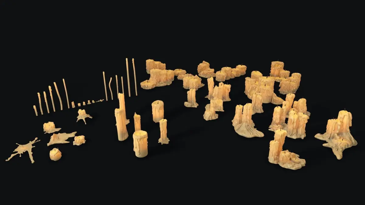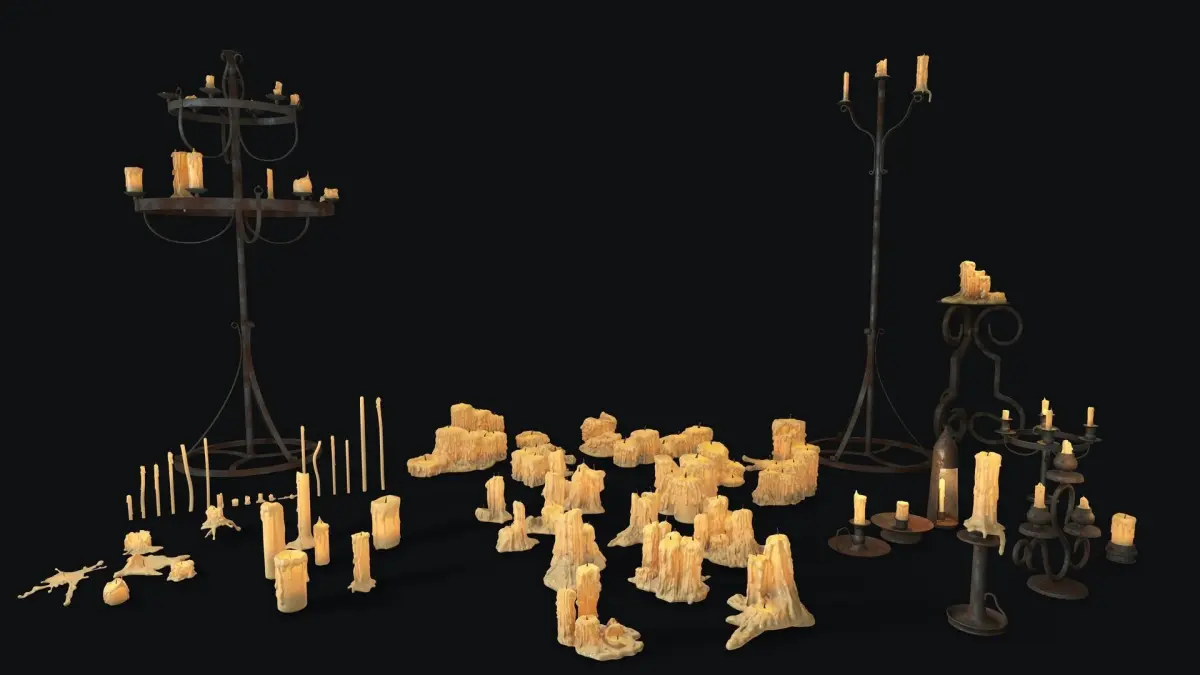 This Collection contains 50 different low-poly candles(simple, merged, thin) + 10 medieval candlesticks