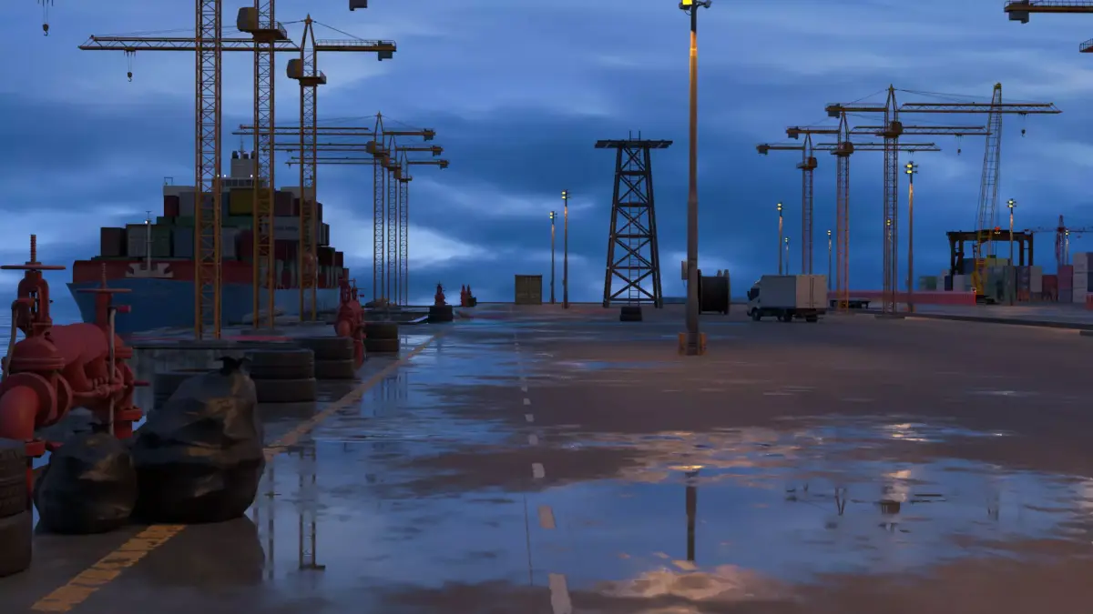 Large Cargo Port Shipyard container ship 3d model, created in Blender 4.0 , and rendered in cycle render engine, there are many 3d formats available for downloading.