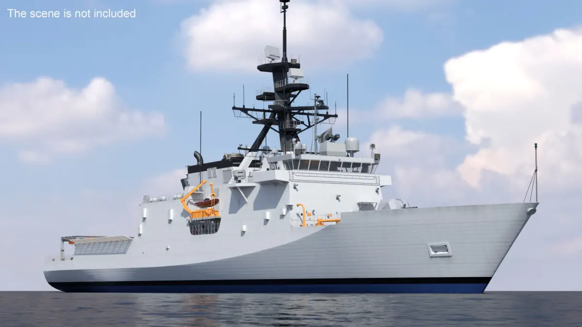 Large Coast Guard Patrol Vessel is a 3d model of a modern naval vessel designed for versatile maritime operations, featuring a helipad and integrated garage.