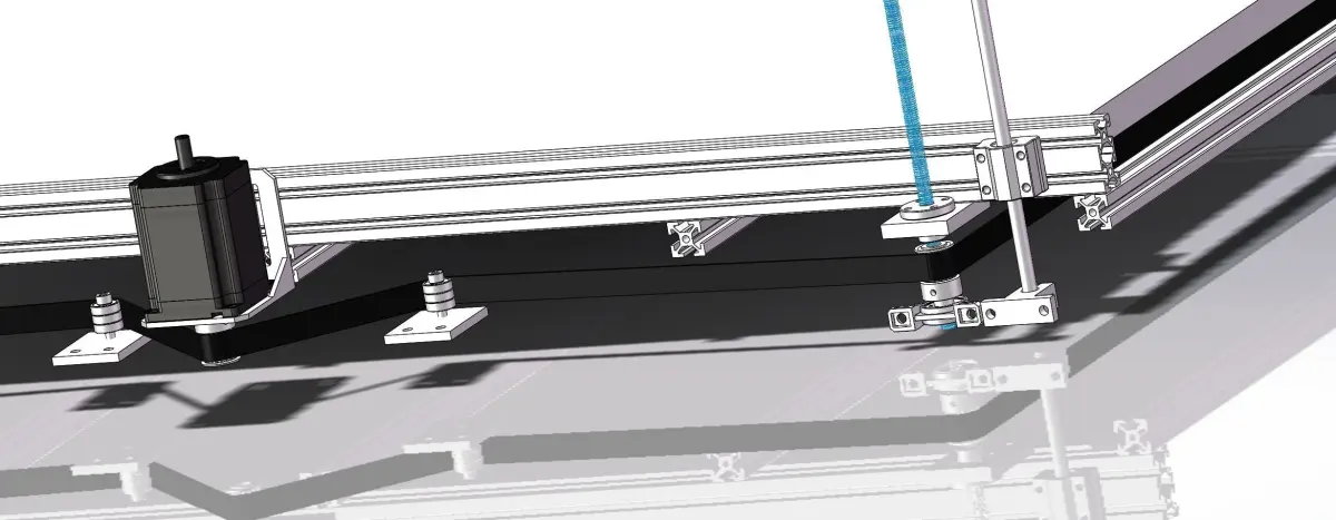 The mechanism drives the platform up and down by means of the lead screw mechanism through a plurality of support adjusting mechanisms.It includes synchronous mechanism and motor drive mechanism. Difficulty: how to synchronize the lifting and lifting of heavy-duty items to ensure the constant center of gravity of the platform.