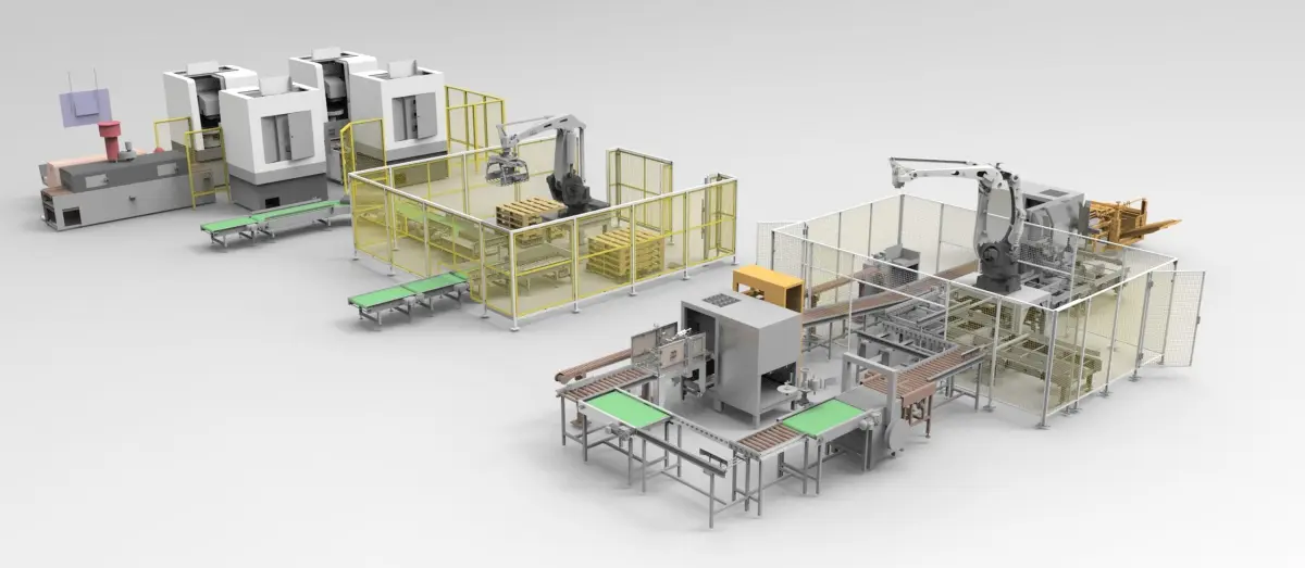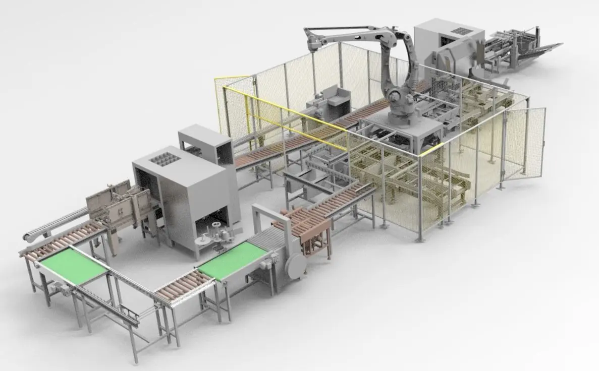 Large manipulator layout equipment lineMachine plus material machineCleaning machine, roller assembly lineManipulatorPackaging machineCarton packing machineTurn over blanking machineGrinding machine