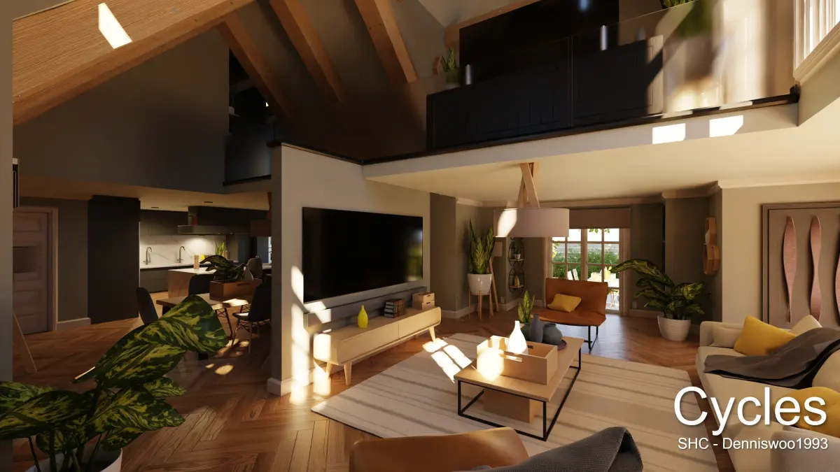 All cycles settings are already set up (samples, bounces, denoiser) the only thing manually adjusted is the different camera exposure for every roomWhen rendering with Cycles, Try to only turn on the lights of the spaces that are actually visible on the renders. Especially the sunlight’s quality will be much more noisy when many lights are turned on.