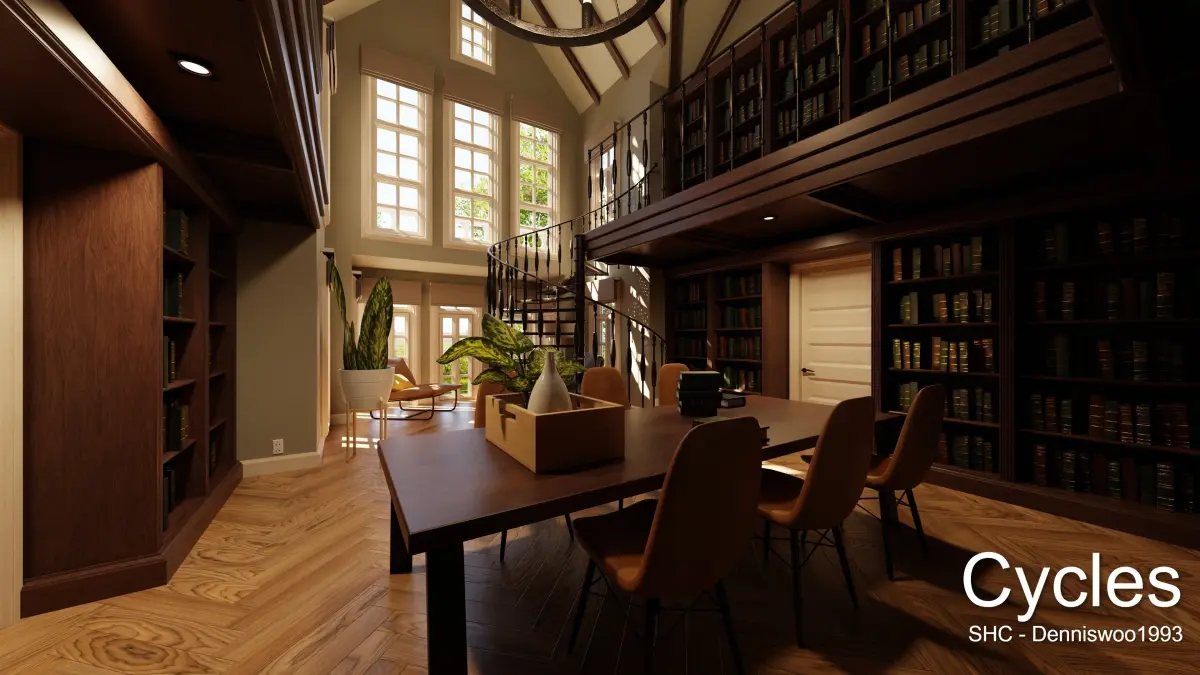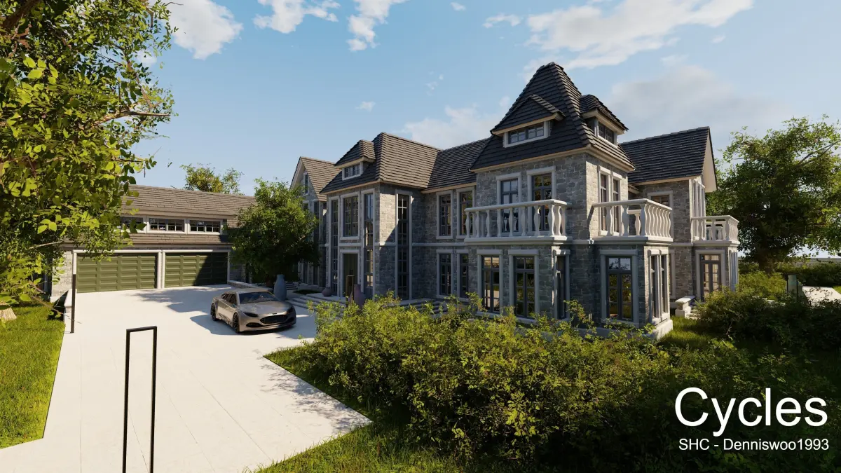 This is a classic mansion with modern elements and a furnished interior for Blender Eevee and cycles. Everything in the scene is originally designed and modeled.