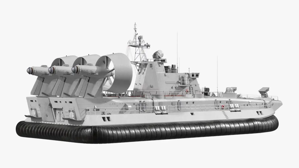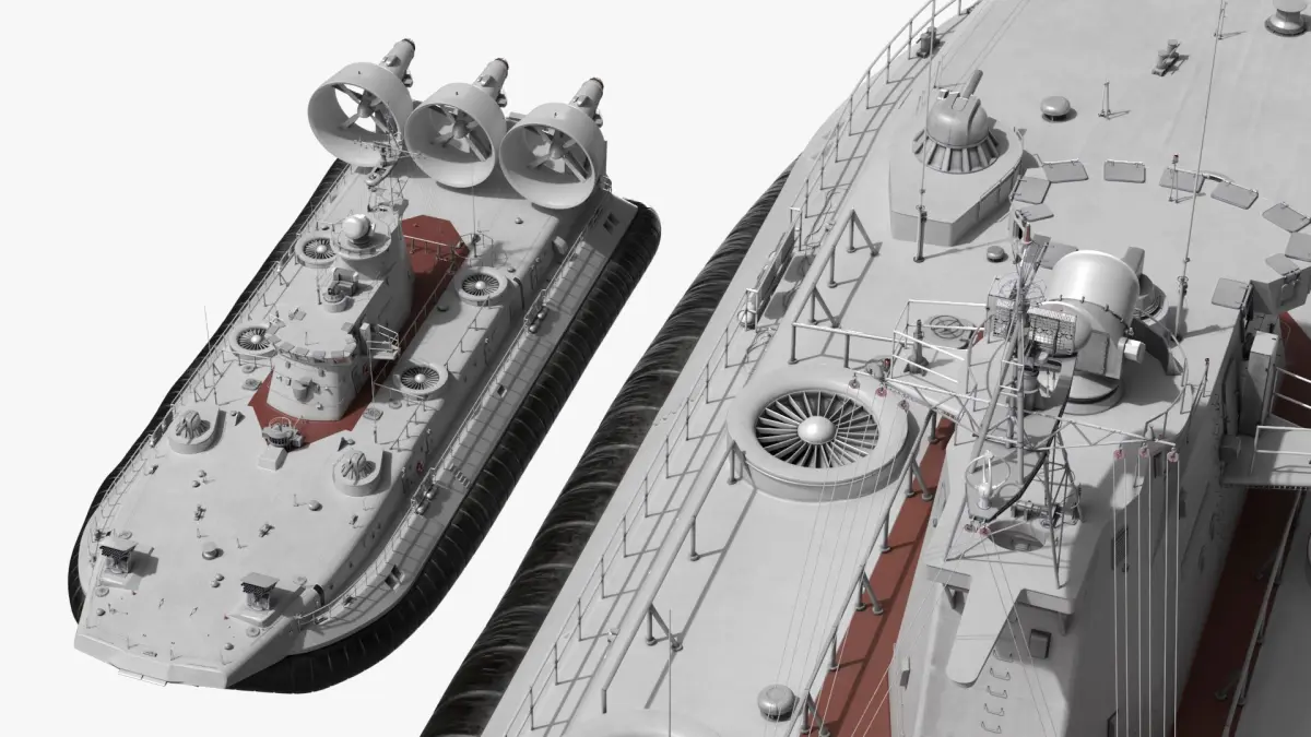 This model captures the robust design of the hovercraft, featuring large propulsion fans, a spacious cargo area, and a durable air cushion skirt. The Zubr-Class is equipped with advanced navigation and communication systems, making it capable of transporting heavy armor and troops across water and land with speed and efficiency.
