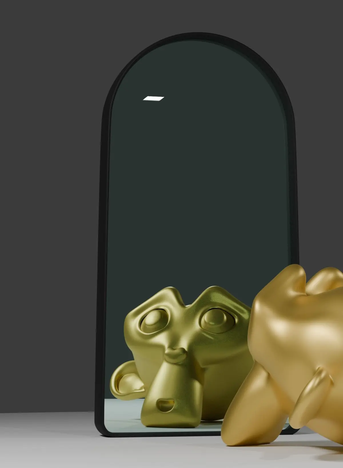 Mirror made in blender. Object is composed of three parts : the frame, the reflective surface, and the glass.Textures are not included. The glass was made using a glass bsdf to accuratly recreate a mirror.