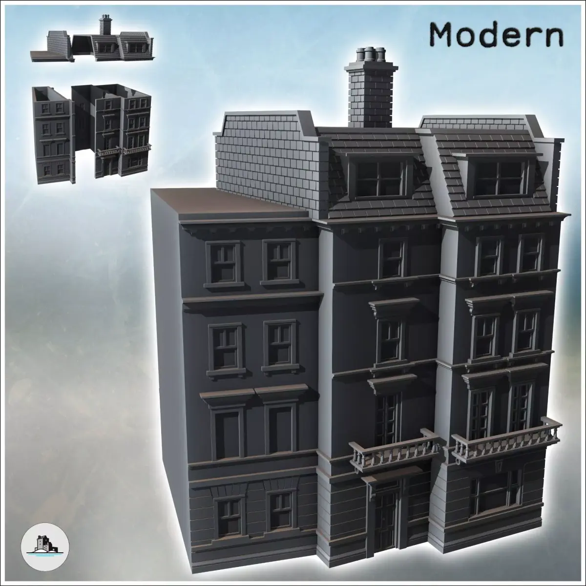 Files available for strictly personal and exclusive use: no commercial use or sharing with others is allowed, thank you. The file is divided in 5 parts (you can see how on the pictures). The interior of the building is fully playable. The model is provided in 28mm (1:56e) but it can be easily adapted to your scale :