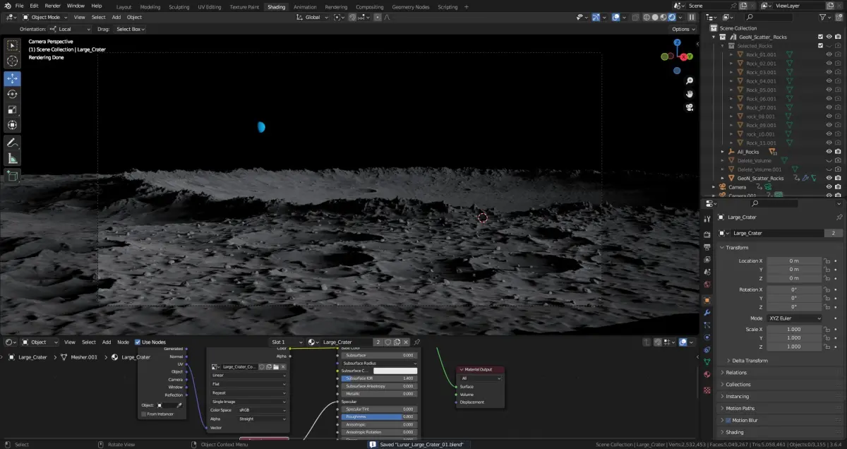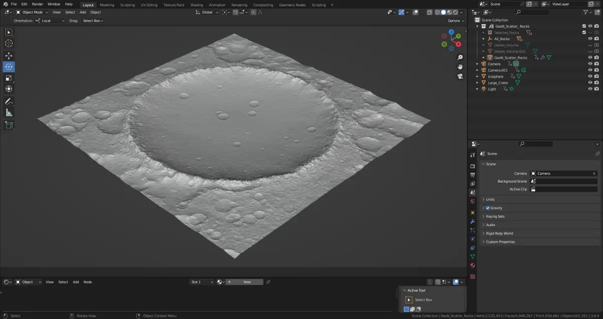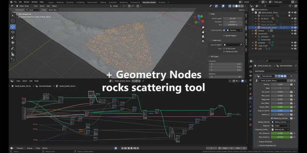 - geometry nodes scattered rocks on the ground (a tweaked version of my GeoN_Scatter_Rocks setup)