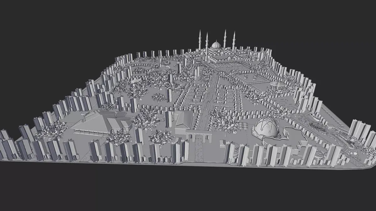 Mosque Park Environment – Middle Eastern City 3D Scene is a large-scale environment featuring a full mosque and park complex.