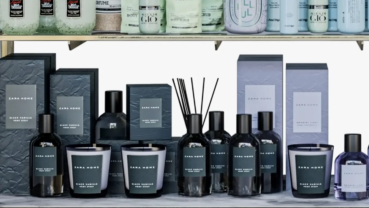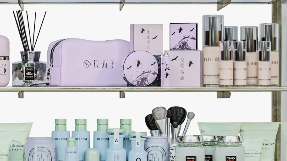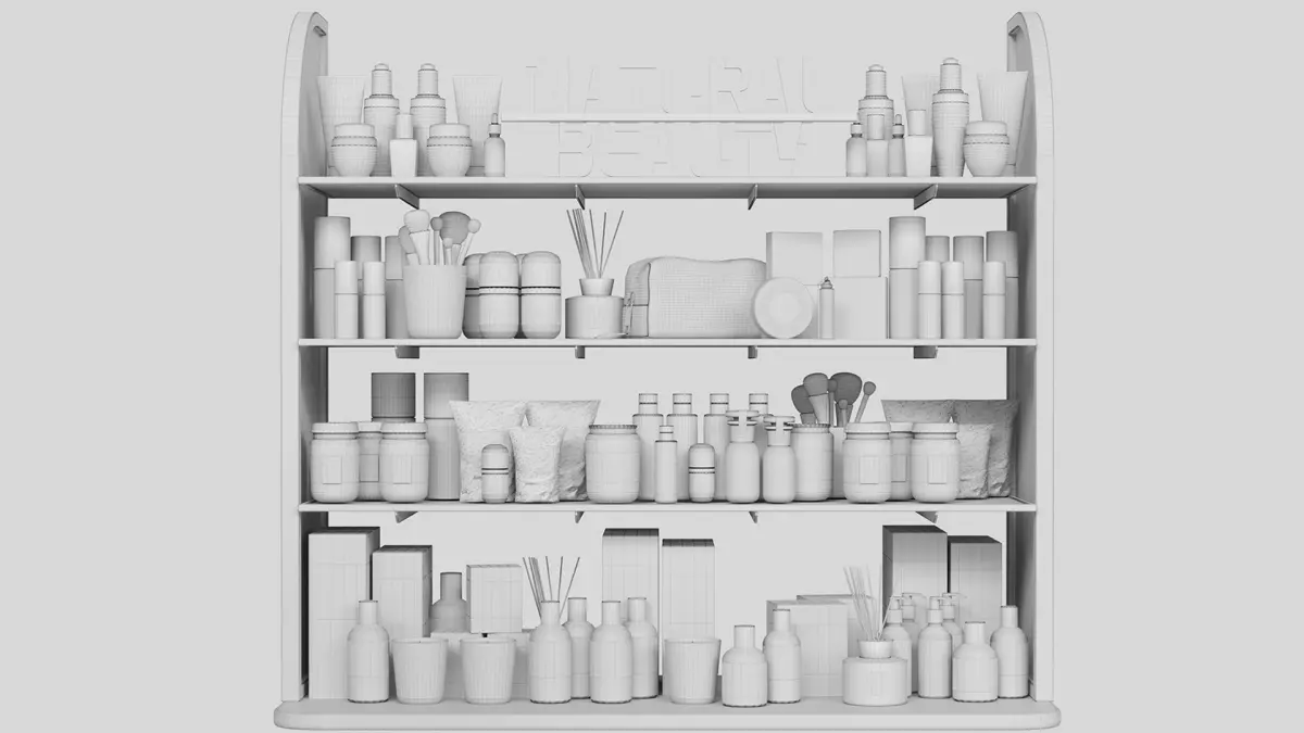 Large rack with makeup cosmetics in a beauty salon 3D model