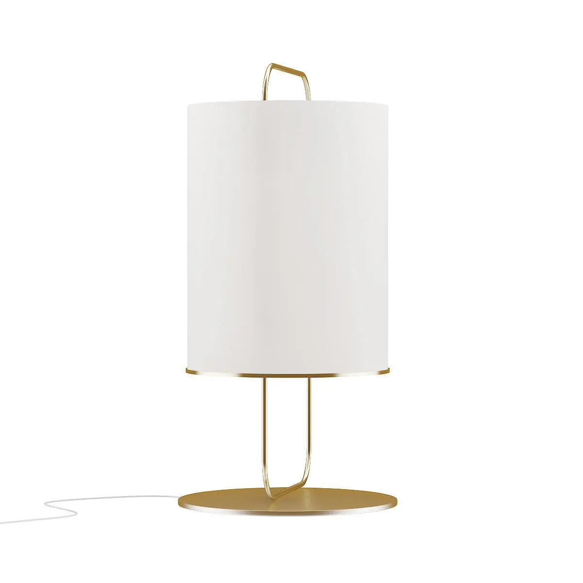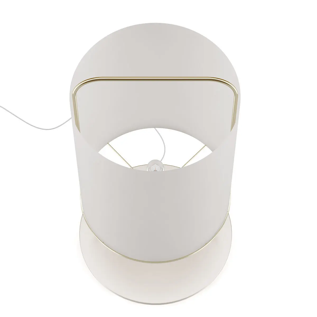 3d model of large cylindrical floor lamp with golden metal elements. Compatible with 3ds max 2010 or higher and many others.