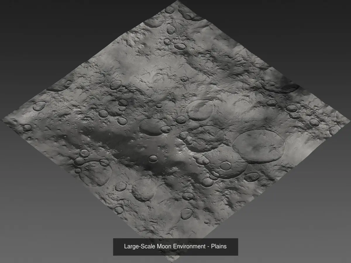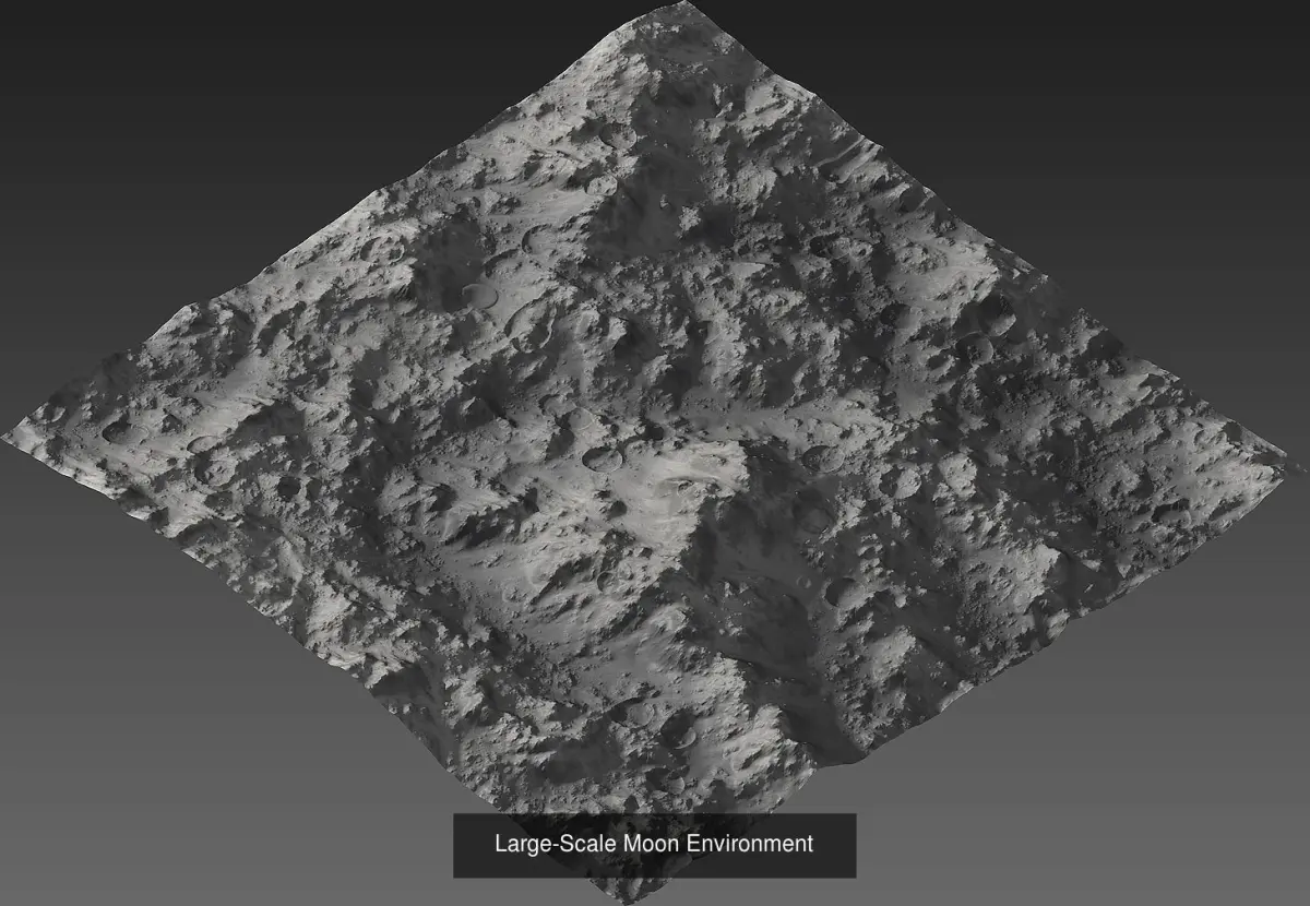 This collection of lunar landscapes contains three very different, highly detailed terrains. These extra-large sceneries are suitable both for realtime 3D and CGI.