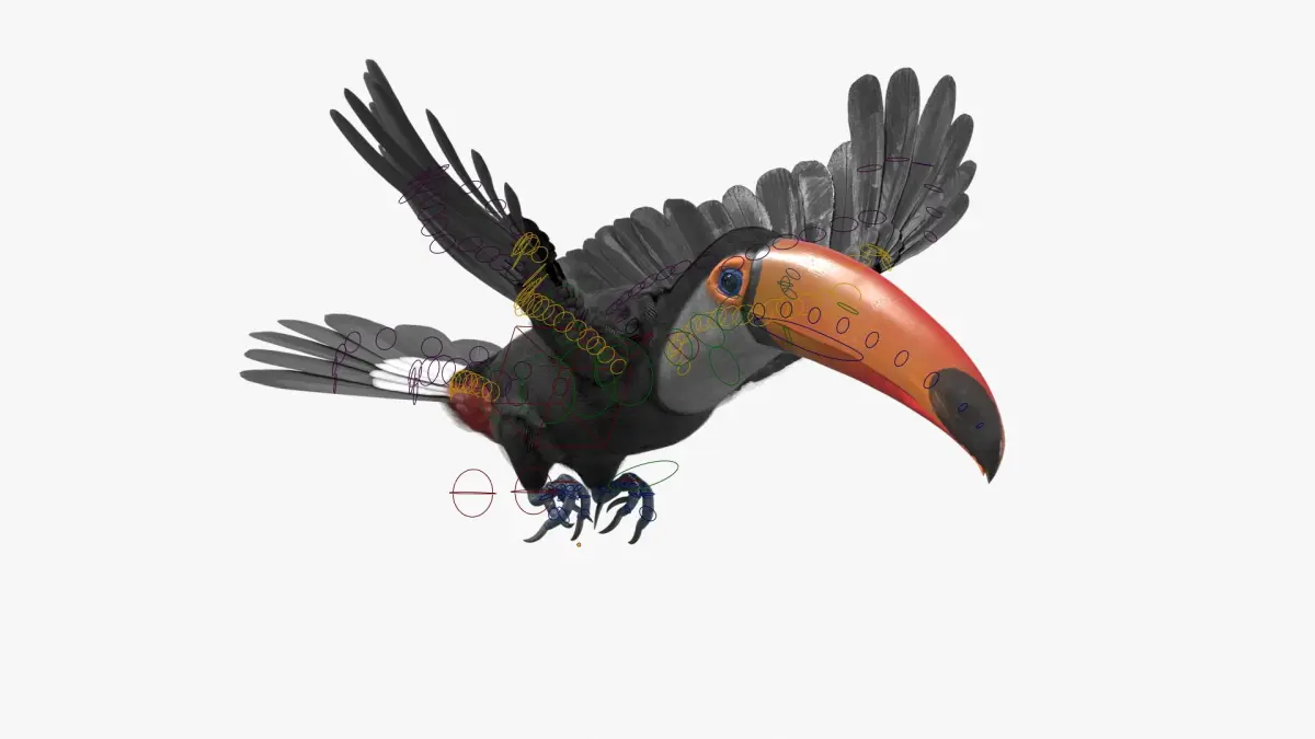 Large Toco Toucan Fur Rigged For Blender is fully rigged and is ready to be animated in Blender. You can easily position it the way you need or animate it the way your project requires. See the screenshots to get an idea of how rigging works. The pose of the model on the render images is an example and can be recreated using rig, it is not initially included into the product.
