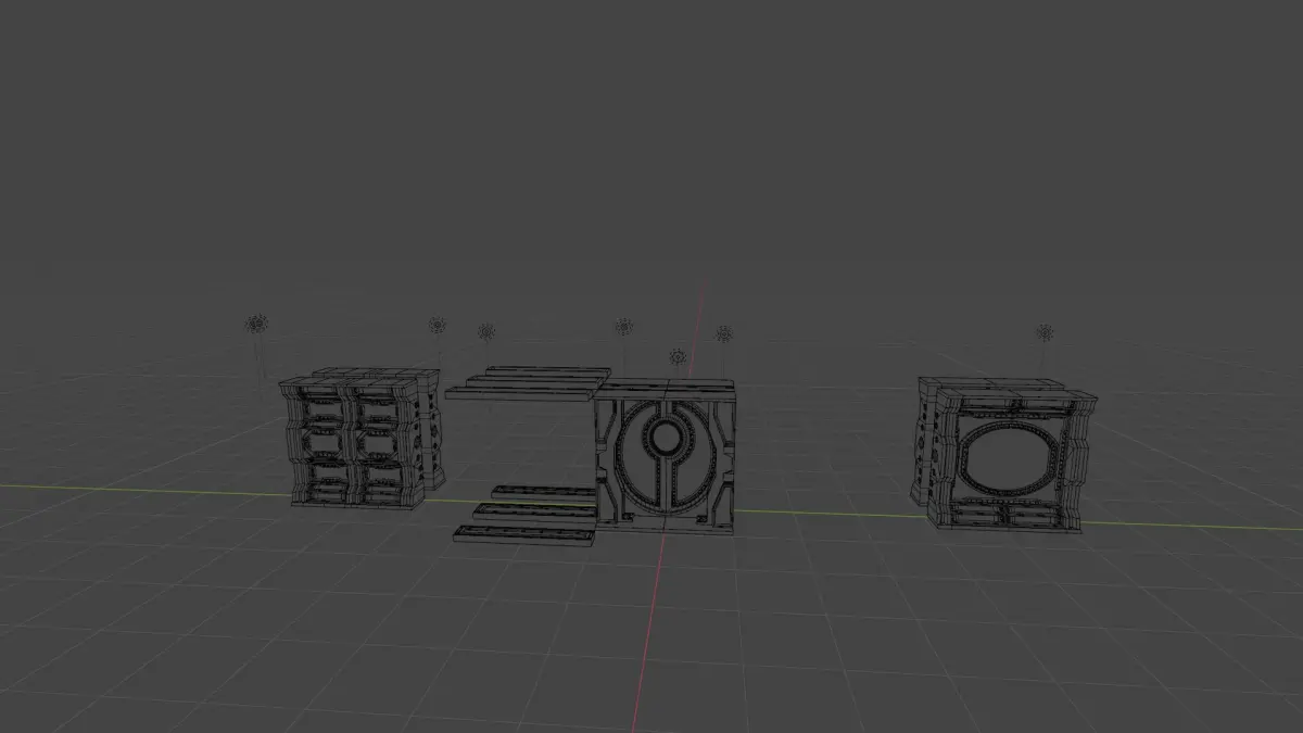 Large Doors - 15,632 Faces (15,918 Verts) _____________________ Long Wall Floor/Ceiling - 2,882 Faces (2,864 Verts)