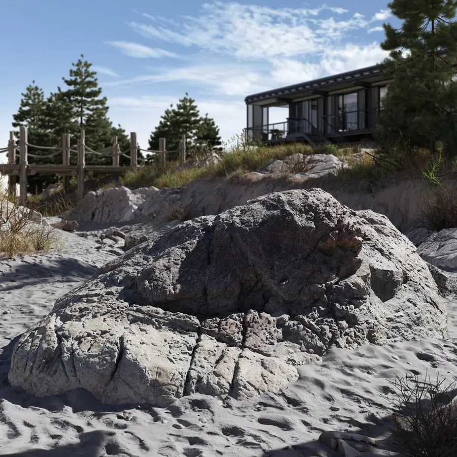 Large Wave Beach Rock Model