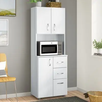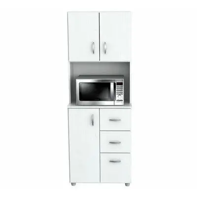 Heart of your home lacking in storage space. This kitchen pantry is here to help! Crafted from manufactured wood, this piece features three drawers and two cabinets, ideal for tucking away any kitchenware essentials, while one open shelf provides a great spot for your microwave.FeaturesHas an access holeCan be assembled without the lower shelfProduct DetailsWeight Capacity: 39.6 lb.Microwave Shelf: Yes