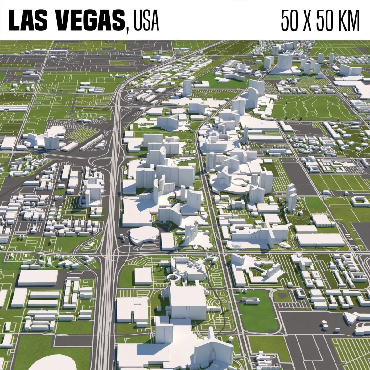 A DETAILED 3D MODEL CITY MAP OF LAS VEGAS, USA: