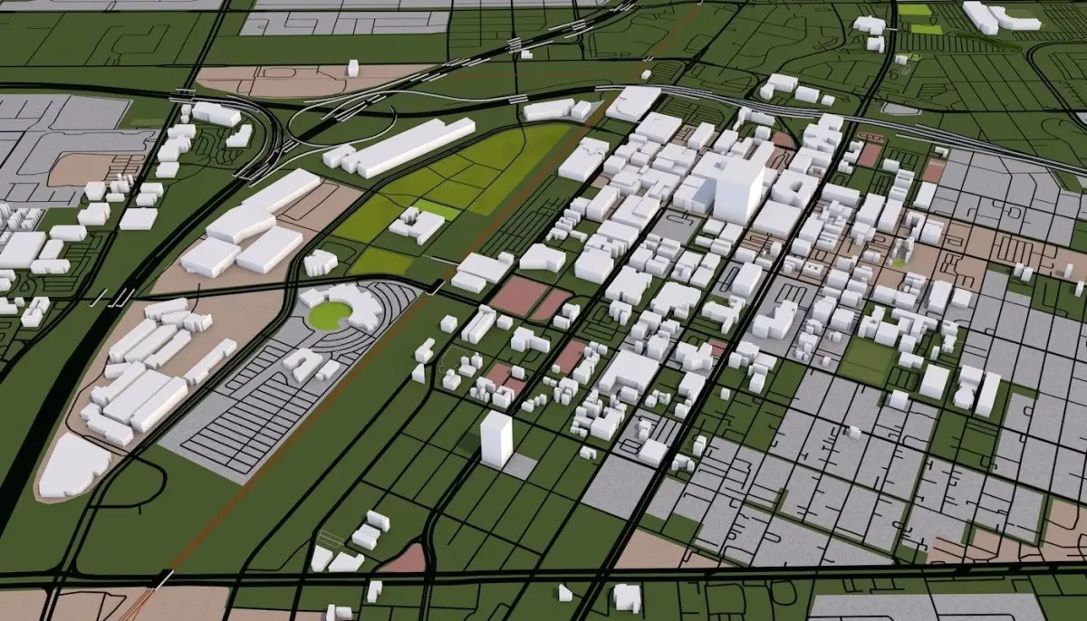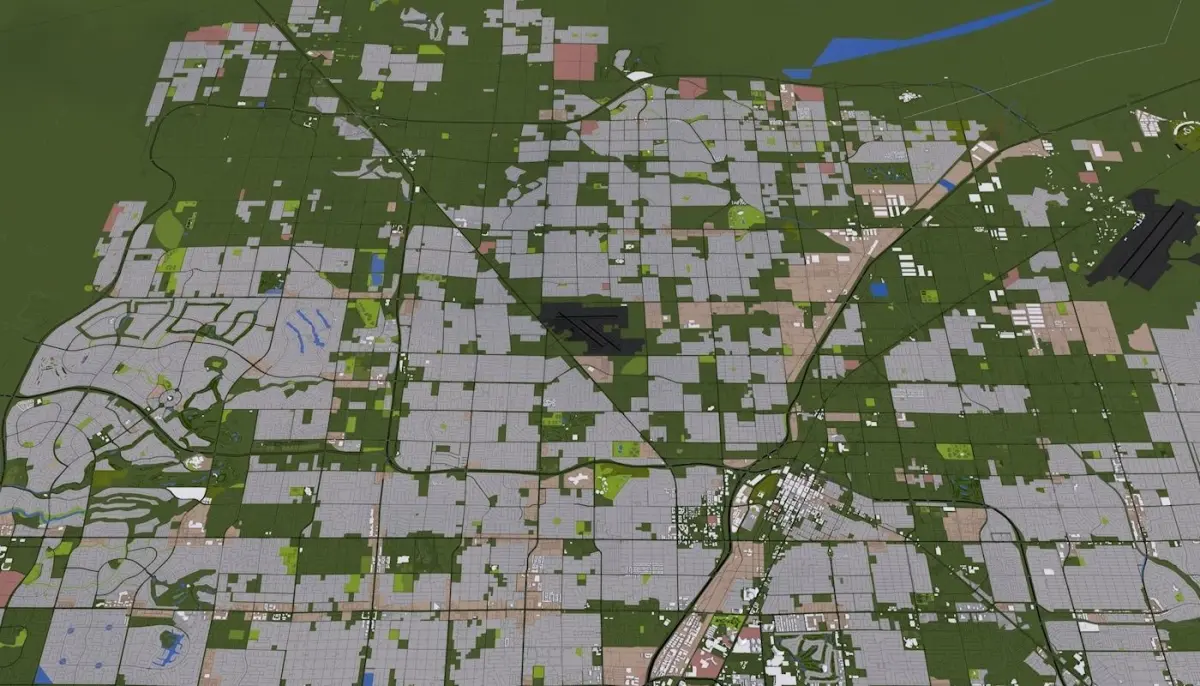 3D representation of Las Vegas City USA using 2019 map data. Roads, railway, land, water, buildings are made using real world data. Buildings are accurately placed and resembles the real world object up to some extend. Please note that random buildings (varying height) are added to those area where real world data is not available.