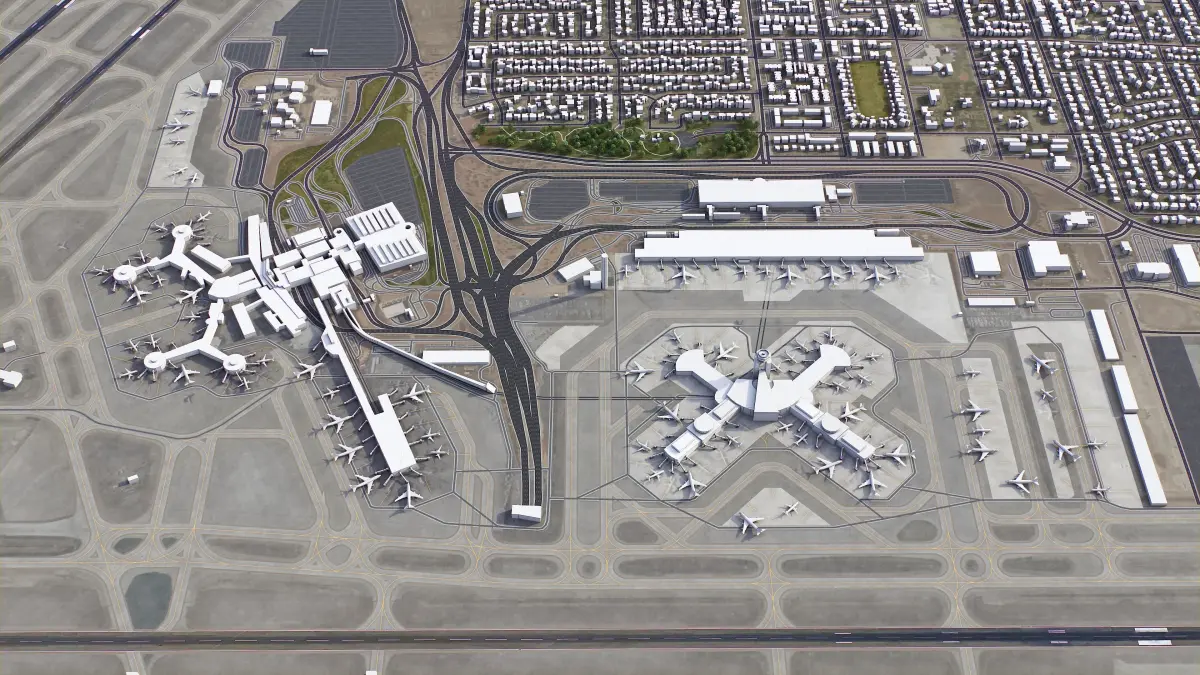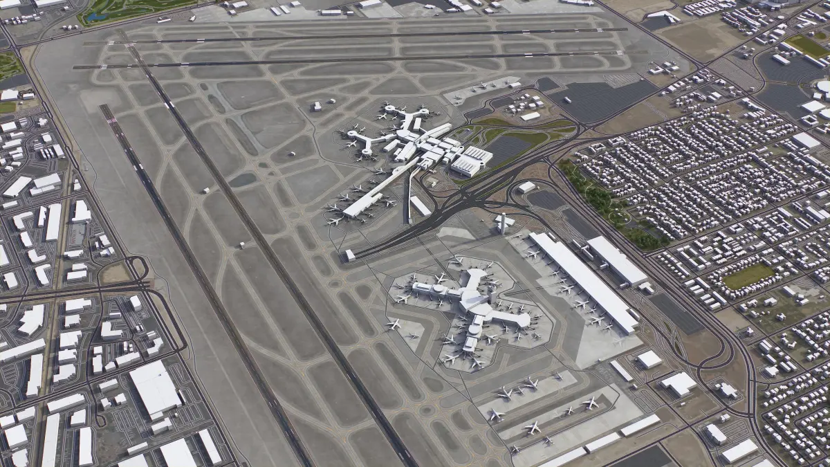 This is exact and accurate to-scale 3D model of Las Vegas - McCarran Airport and its surrounding area based on GIS data (May 2021)