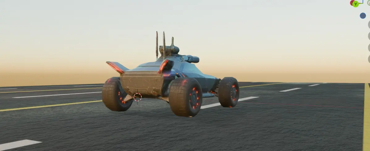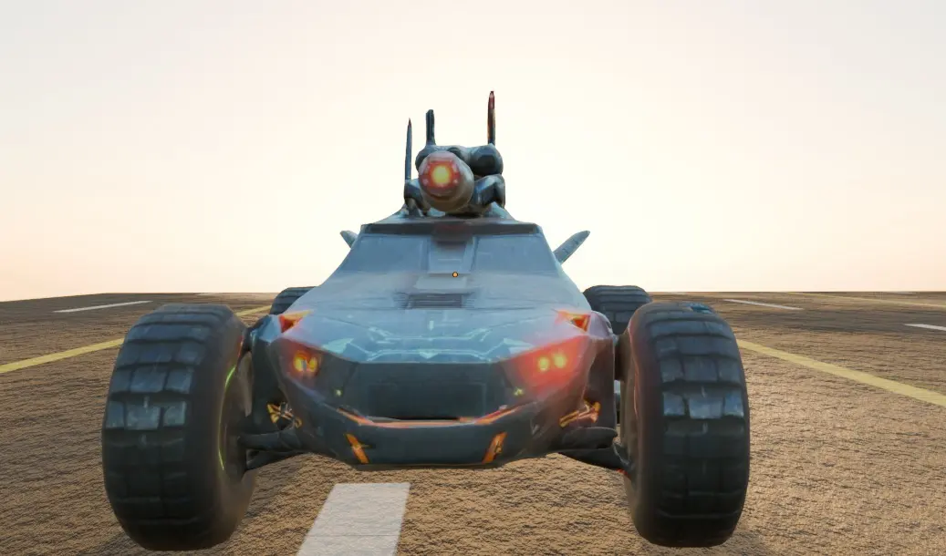 It has a stylish, aggressive appearance. The pointy modifications are equipped with dual hood-mounted laser cannons and a rotating missile launcher on the roof. Here is the requested image of the futuristic armored fighting vehicle. Let me know if you need further adjustments or specific details improved!