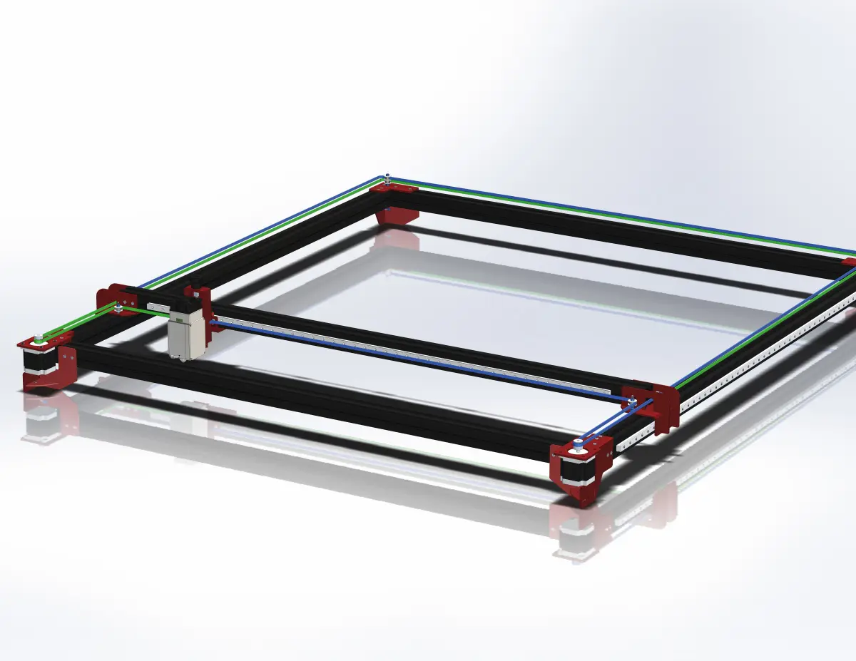 <><>All parts carrying the motion system are adjusted for metal cutting. The adjustable piece that holds the head of the laser is the 3d printed piece. Please do not ignore this.