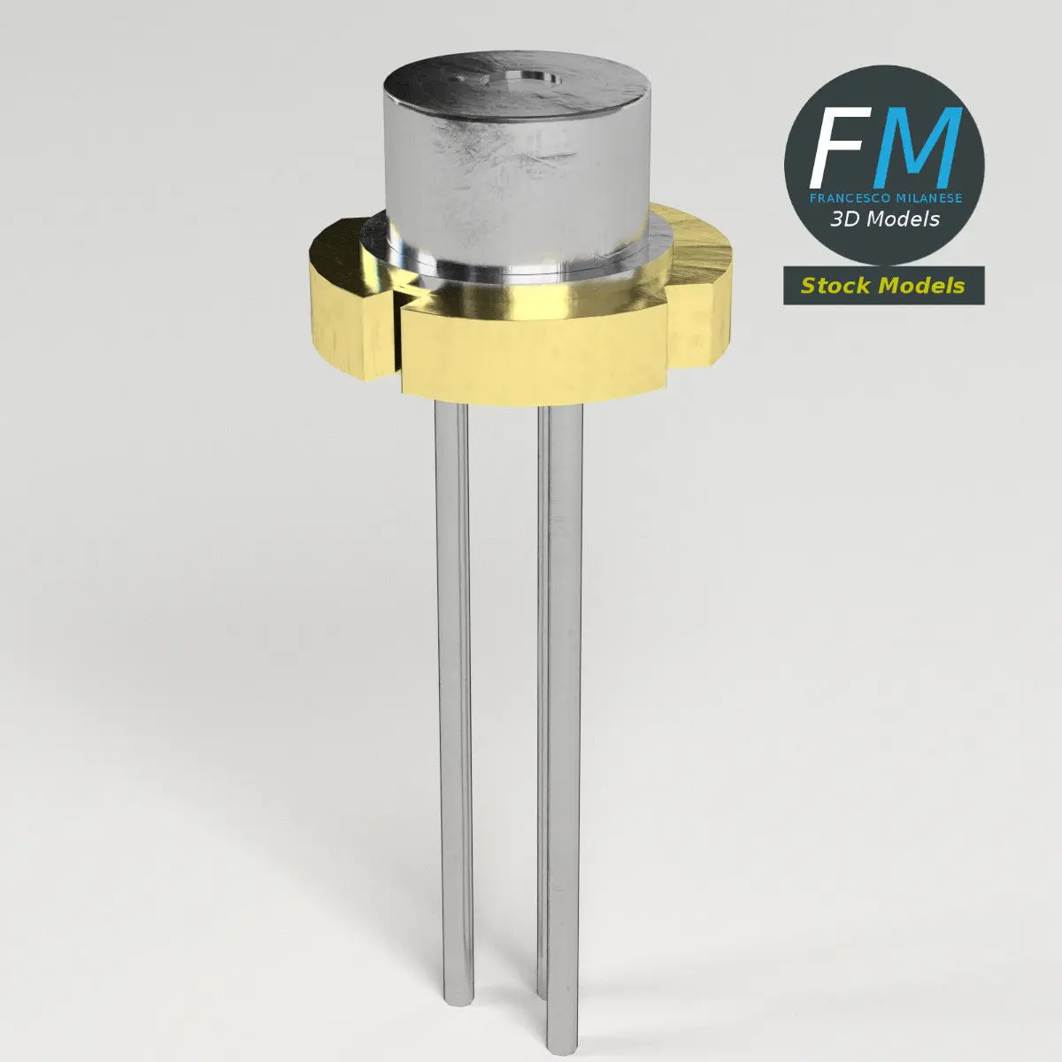 Laser diode 3D Model. 2 objects (laser diode, lens), each one with its own non overlapping UV Layout map, Materials and PBR Textures set. Production-ready 3D Model, with PBR materials, textures, non overlapping UV Layout map provided in the package.