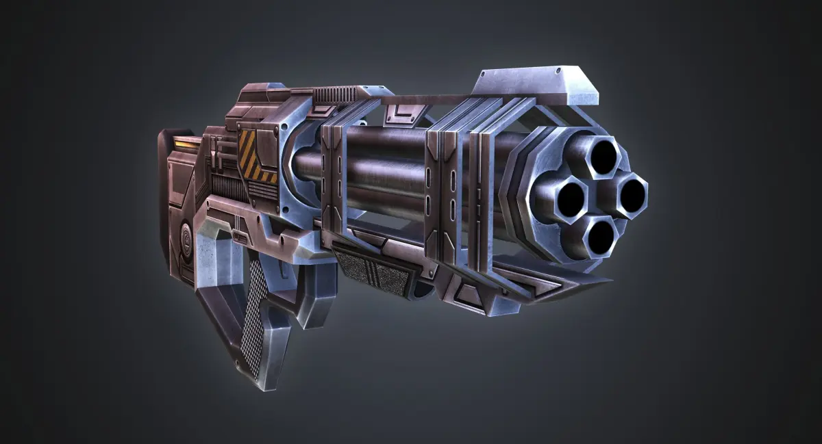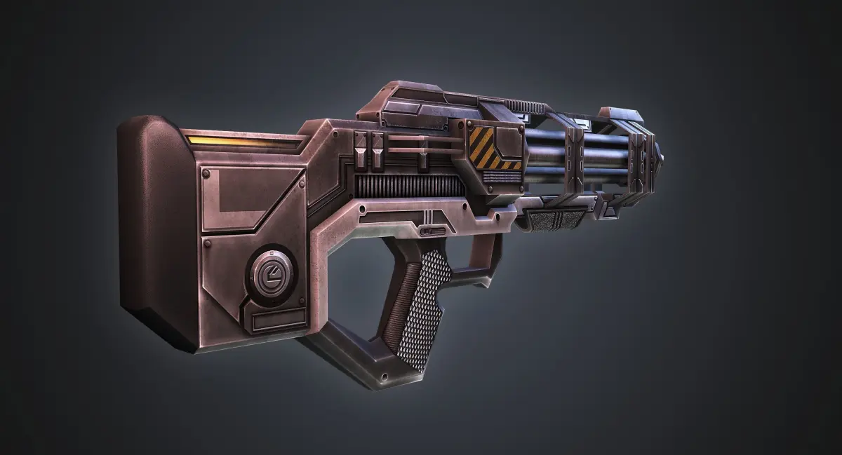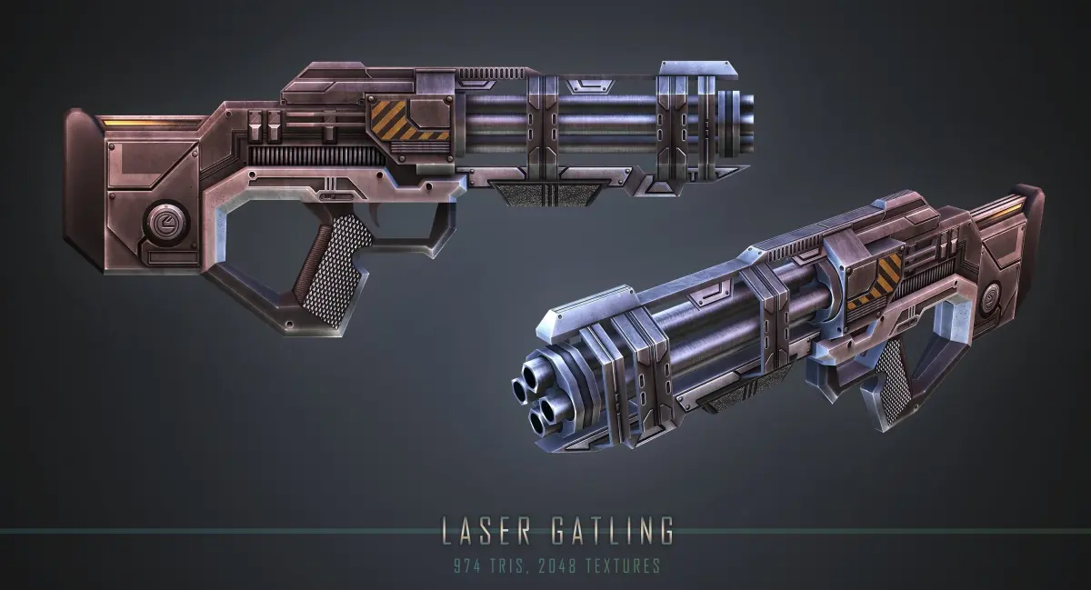 Low poly game style model of a sci-fi machine gun. Perfect for third person shooters or FPS games with a poly budget. Uses 2048 x 2048 hand-painted diffuse, spec, and bump maps. Rendered in scanline with three omni lights. Model is one static object! Photoshop file is included if modifications to the texture are desired. Included formats: OBJ, FBX, and max.
