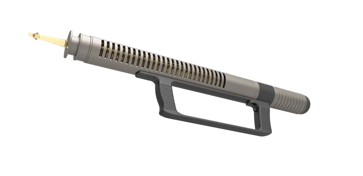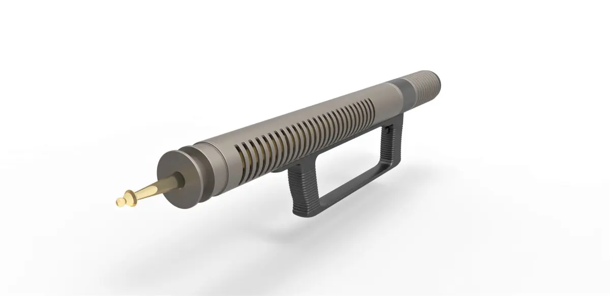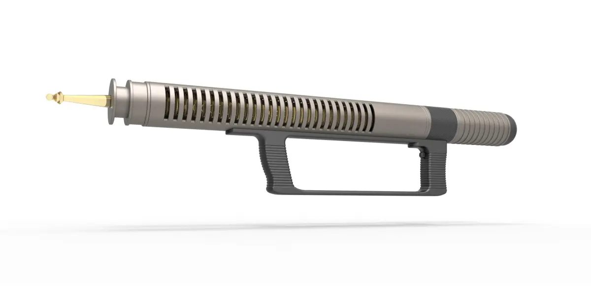The model consists of parts: Body part 1-8, Bottom handle bar, Emitter, Front handle, Inner part 1-3, Rear cap, Rear handle, Trigger, Upper handle bar.