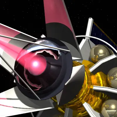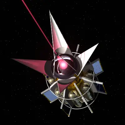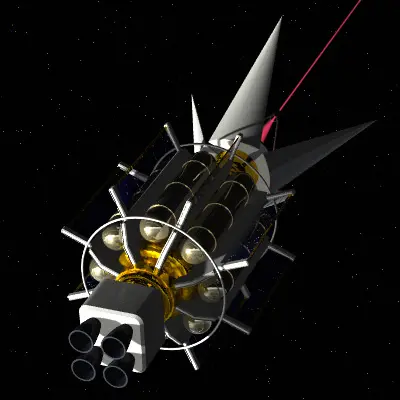 Laser weapon spacecraft designed for asteroid deflection. Laser is a separate layer. Light setup included with .lws scene file. All textures are procedural; no maps.