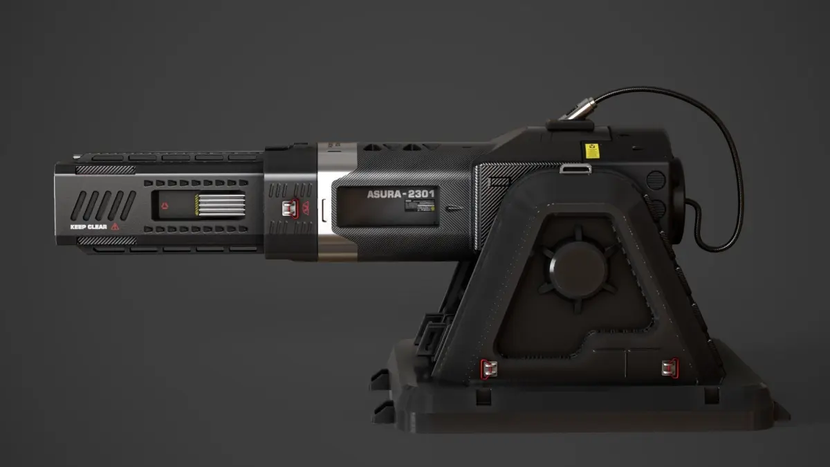 INFO This is a model of a Highly Detailed, Laser Turret (ASURA). Originally created with MOI3D. and textured using Substance Painter. Rendered in Marmoset Toolbag. (Final Textures Applied in Cinema 4D - Check Last Screenshots). This model is suitable for use in broadcast, advertising, design visualization, real-time, video game, etc. This Model Contains 2 Sets of (UDIM) PBR Textures (2K). All preview images are rendered with Marmoset Toolbag 4. Textures have 8 bits per channel. Model is built to real-world scale.
