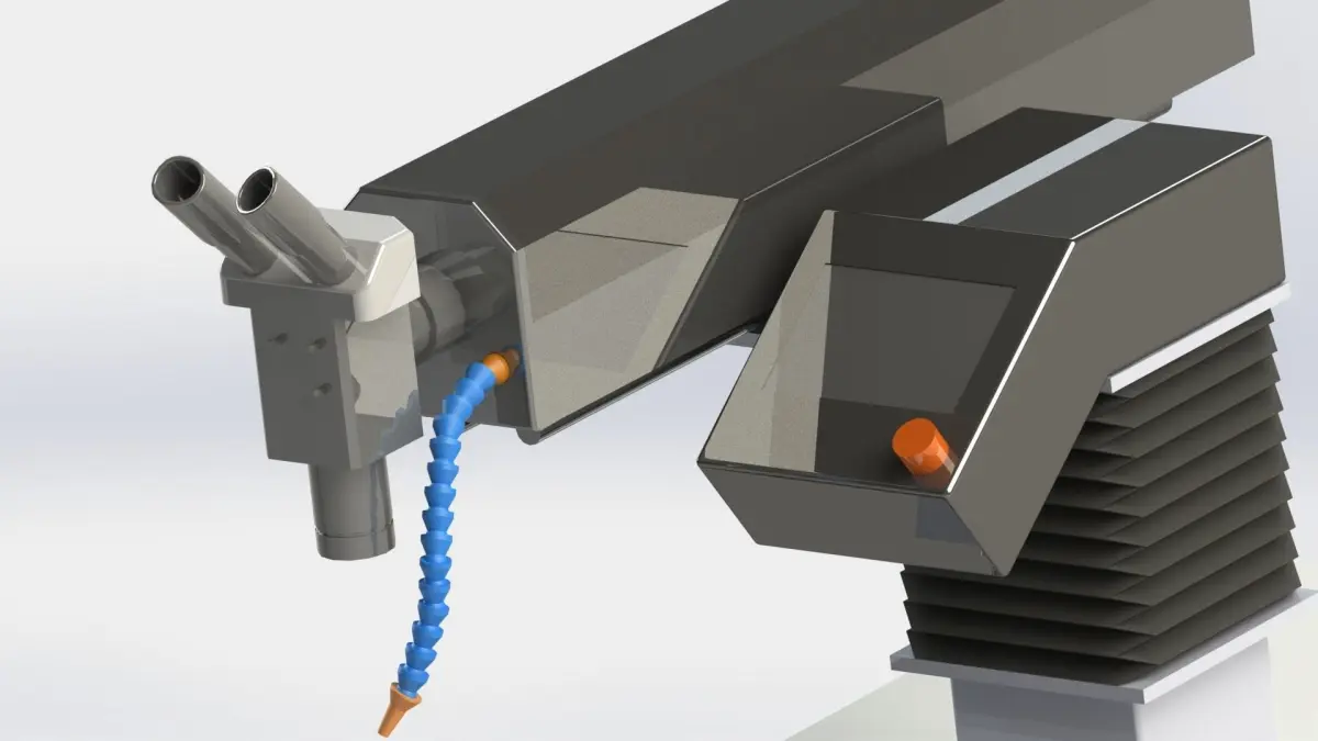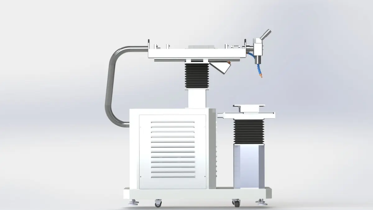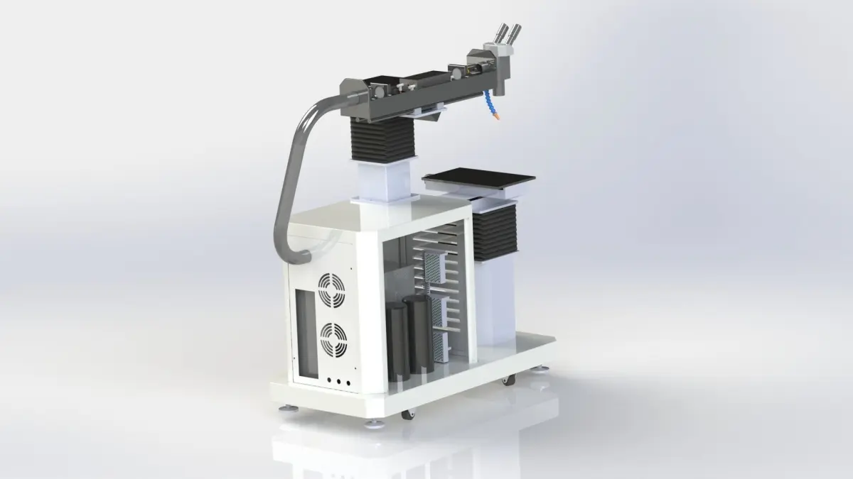 Laser mashine for automatic laser impulse welding is useful for welding metals 1-2 mm thick. At the table can be placed products for welding or fixtures for it. Dimensions 1200x600x1200 mm. the model is suitable for presentations, demonstration of the general composition of the installation, explanation of the basic principles of laser operation. the main nodes are shown in a generalized and simplified form. This model does not have a real prototype, reflects the basic layout of the units, and therefore does not violate intellectual property laws. In this regard, the installation may differ in size from actual machines.