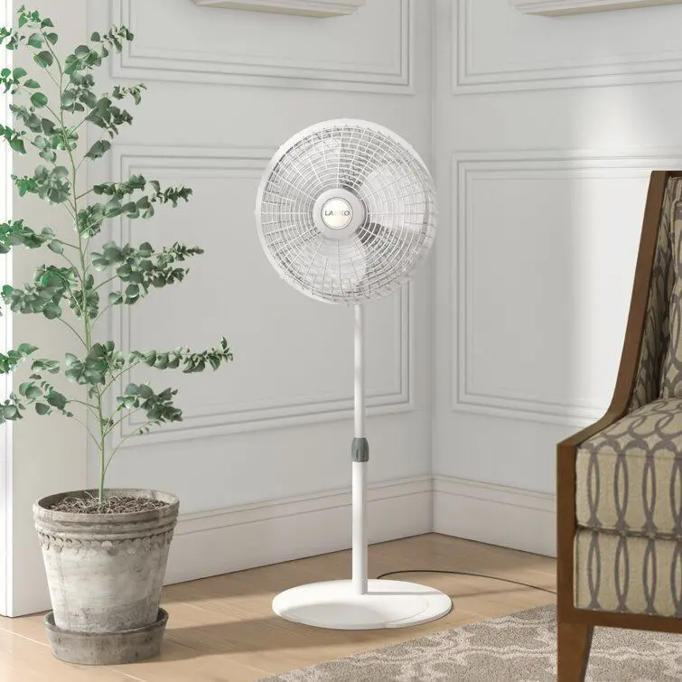 - The 16" Oscillating Floor Fan utilizes the advanced performance grill to provide maximum air flow on all three speeds. The easy grip rotary control makes it easy to select the desired speed. With adjustable height and tilt of the fan head plus the broad sweep of optional oscillation, this fan is sure to add a wonderful breeze to any room in your home.