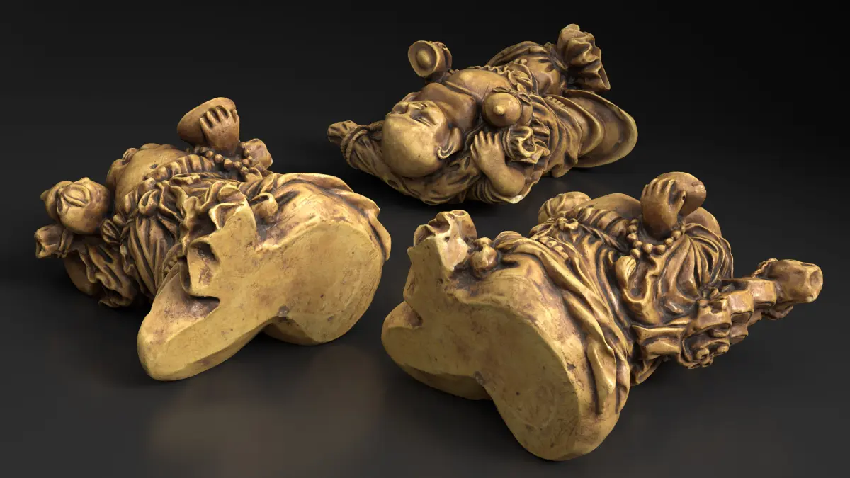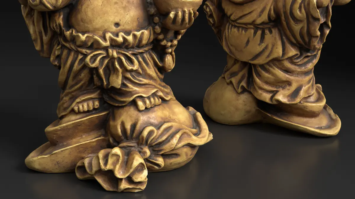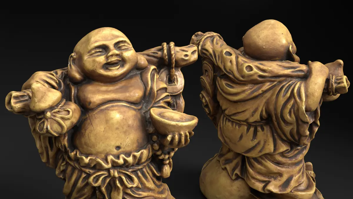 3D model Laughing Buddha Statue optimized for various purposes. Includes three polygon density versions Low, Mid, High and photorealistic 4K PBR textures. Game Ready model. Formats - FBX, OBJ, Blender.