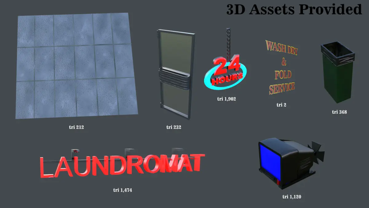 This is a couple of 3D assets used for a Laundromat. Game ready and tested in the Unreal game engine. Textures as well as unwraps were provided including Normals and self illuminations. The formats of the 3D models you will find are .fbx and .obj as well as the .max file.