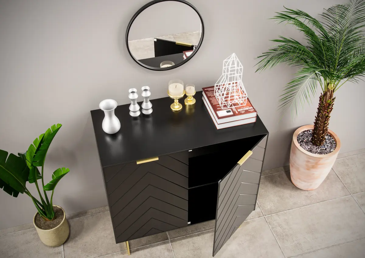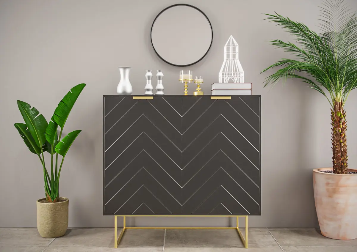 The 2-door cabinet is ideal for any room in your home. Metal leg support complements the cabinet body, Stylish and elegant line design blends seamlessly for a refined look of elegance and functionality. This cabinet is versatile and can work in many home settings. The single adjustable shelf ensures terrific interior storage for all your household needs.
