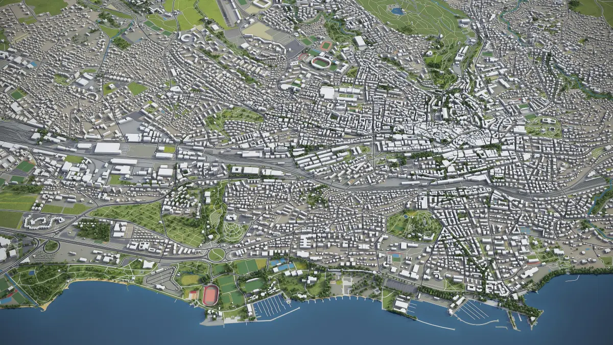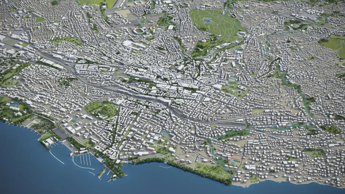 - Full city extents up to 100 x 100 km — or crop to an area of interest for better format compability and scene performance