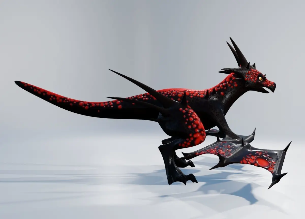 Rigged, lowpoly lava dragon model, available in triangulated and nontriangulated formats. Model file is subdivision ready; textured turntable preview images are of the model with two levels of subdivision applied. Also included in the preview images are the non-subdivided model with visible wireframe. Sculpted in Blender, UV unwrapped.