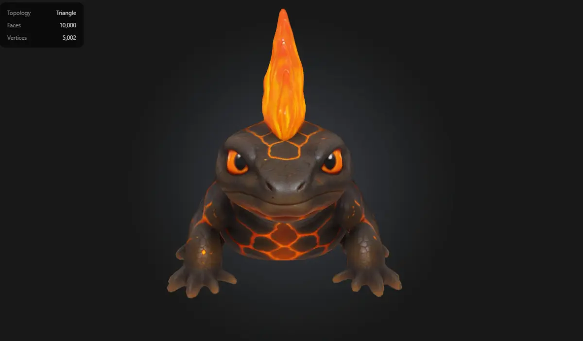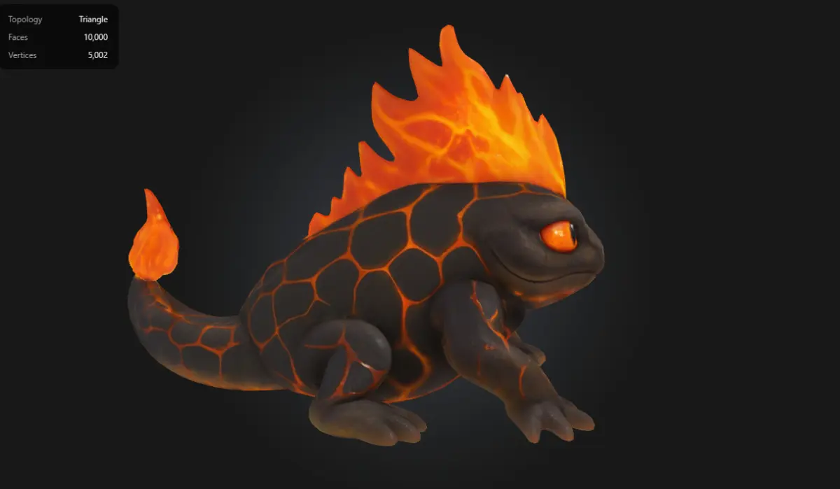 This stylized Lava Salamander is a fiery creature born from molten rock and flame. Featuring glowing magma textures, bright orange eyes, and animated fire effects on its back and tail, this model is ideal for fantasy, RPG, or elemental-themed games. With clean topology and low-poly count, it's optimized for real-time use in AR/VR or mobile games.