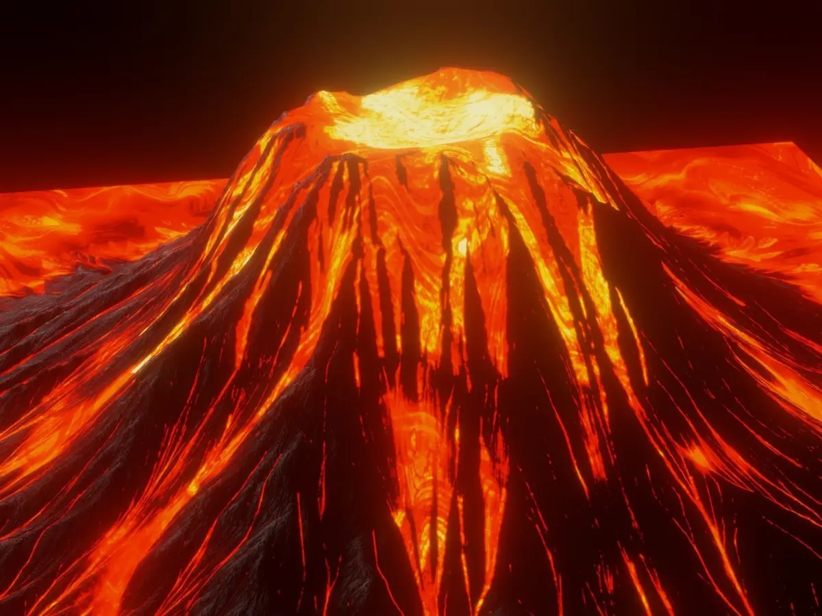 Lava volcano complete with color, spec, roughness, normal, and emit textures. All textures are 4097x4097px PNG format.