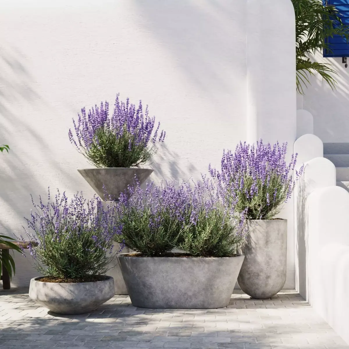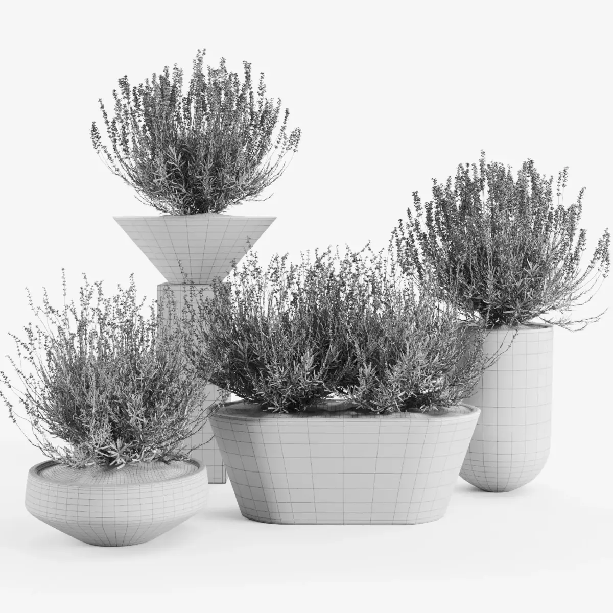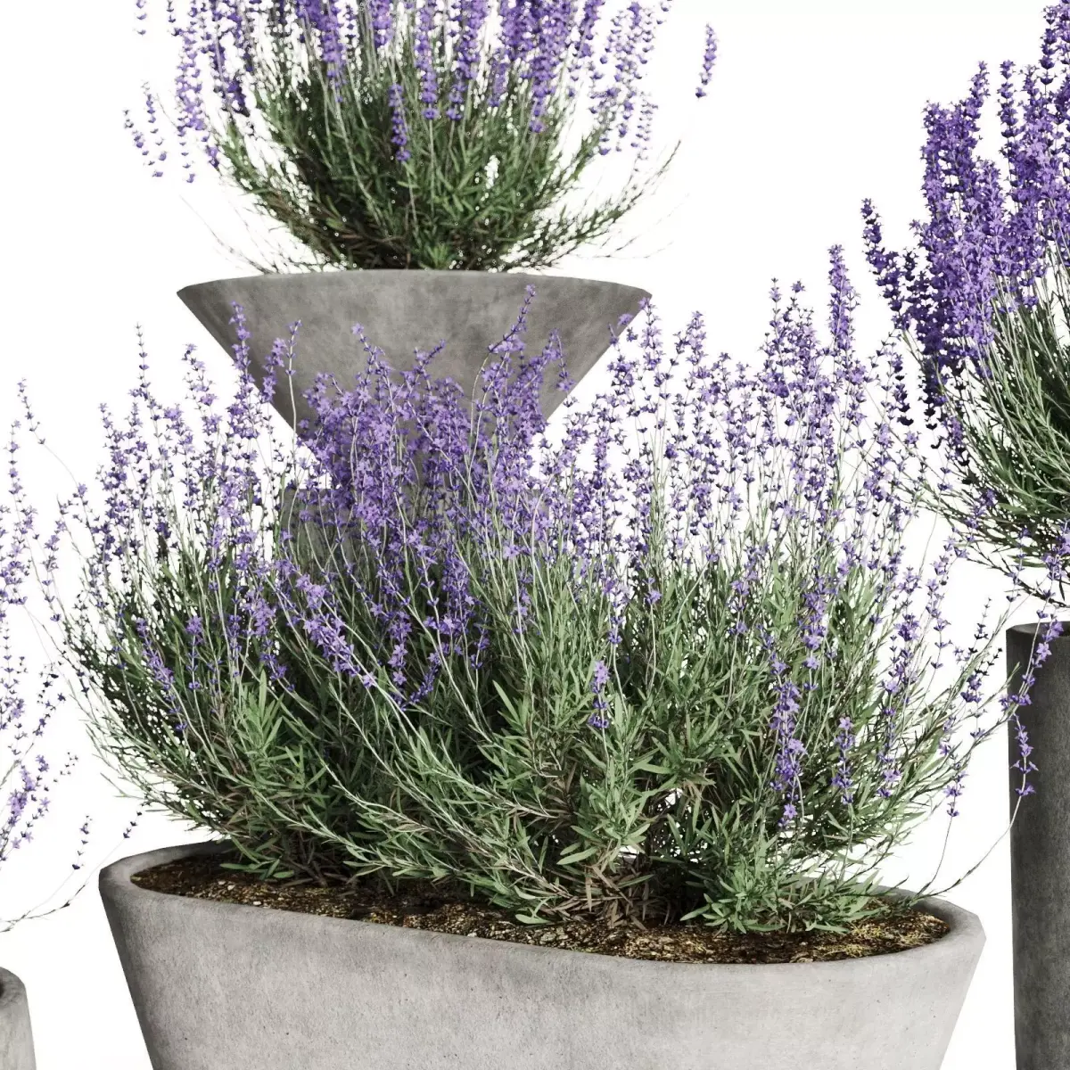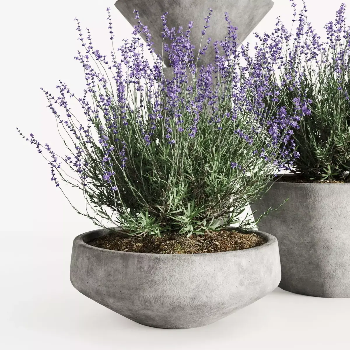 A high-quality 3D plant set featuring detailed lavender bushes placed in stylish modern concrete planters.Perfect for both interior and exterior visualizations, especially in contemporary, Scandinavian, Japandi, and minimalist projects.