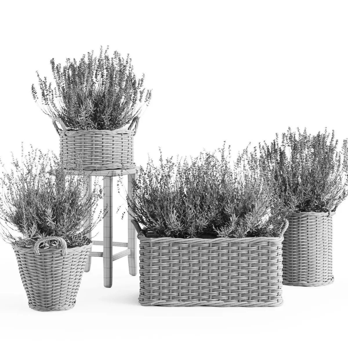his realistic Lavender in Wicker Baskets 3D model set brings a natural, cozy atmosphere to any scene — from rustic interiors to outdoor patios.Each basket features a unique woven texture and carefully detailed lavender plants with natural color variations. The models are optimized for rendering and maintain a high-quality balance between realism and performance.