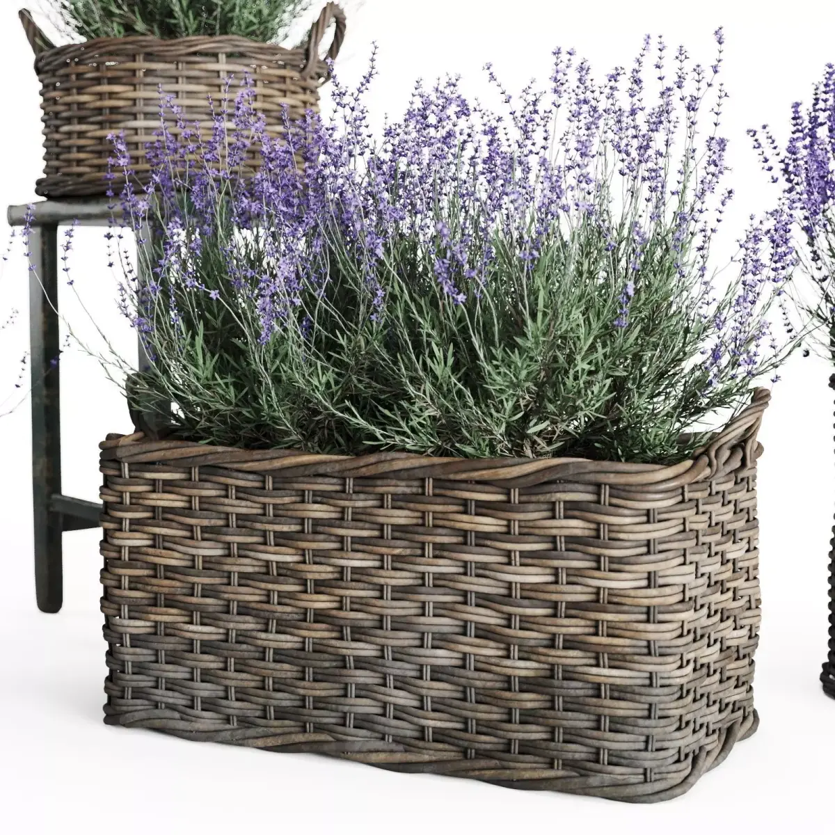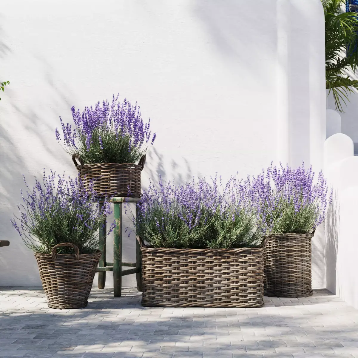 4 unique wicker basket models with lavender plants