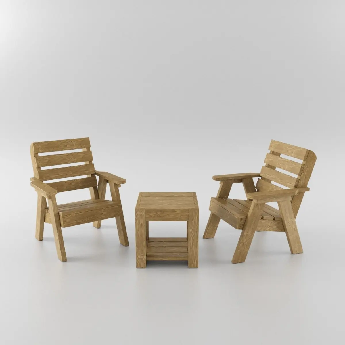 Wooden lawn chair and table