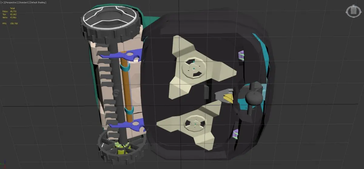 - Model is fully textured with all materials applied.