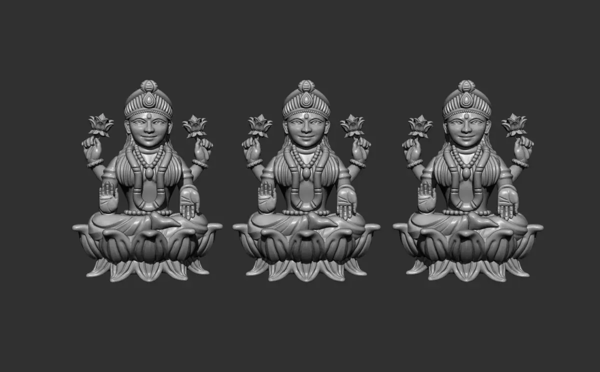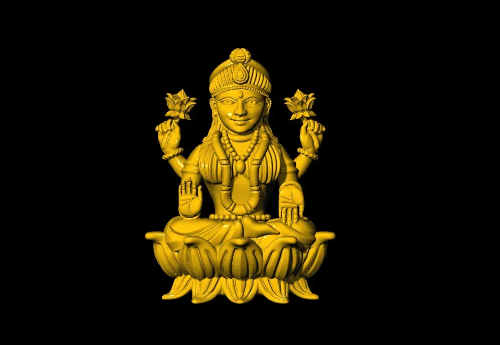 Lakshmi 3d printable model for jewelry. This 3d model ishollow from back side so that it can be light weight as possible, The size of this model can be customized in any 3d software upto certain point, but if you want to cahnge it size any further you can contact me for the size and thickness of the model as per your work. This model is purposefully made for jewelry creation only. This model is available in following format:-