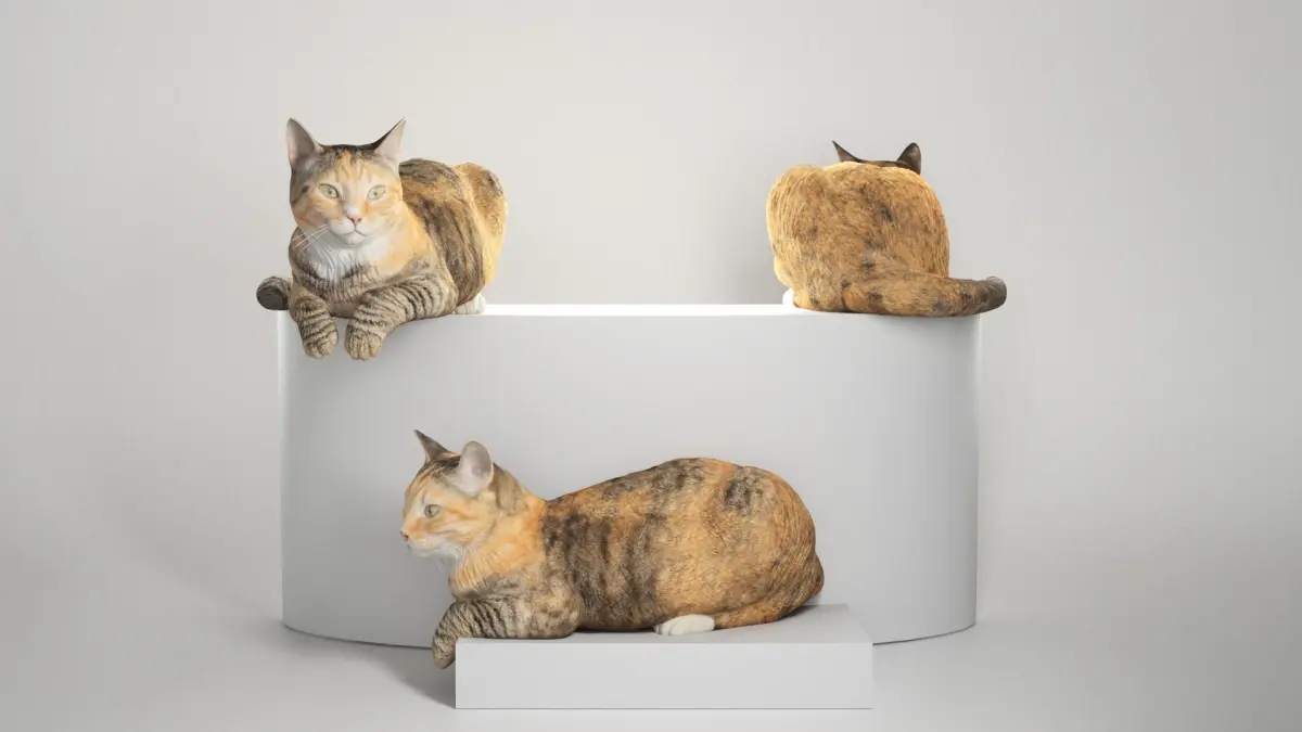 This is a true sized and highly detailed model of a cute charming calico cat. It will add life and coziness to any architectural visualisation of houses, playgrounds, parques, etc. This cat is suitable for game engine integration, VR/AR content etc.