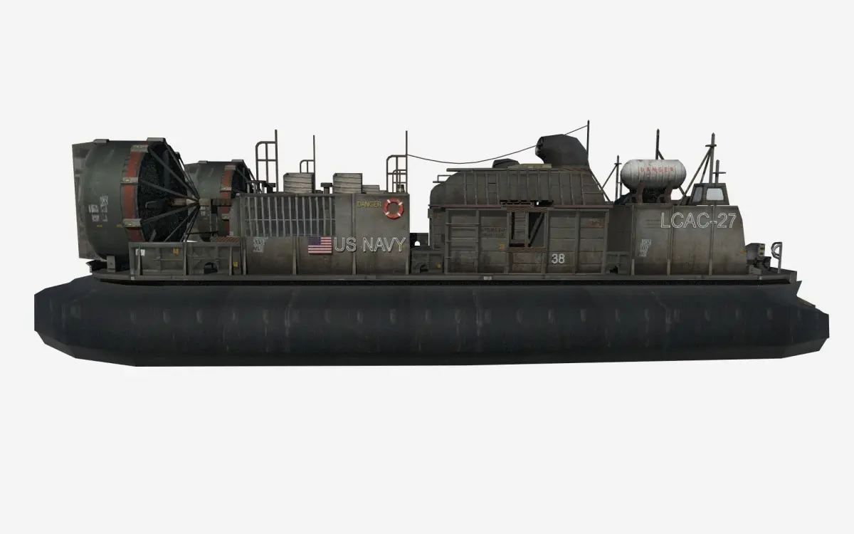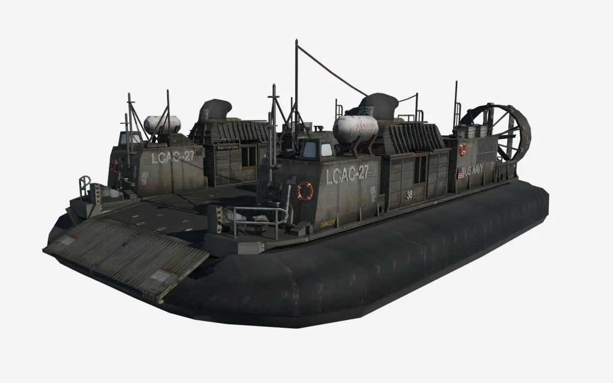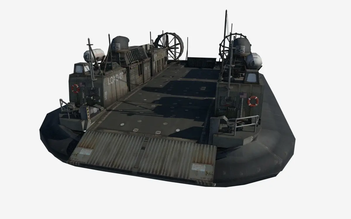 The Landing Craft Air Cushion (LCAC) is a class of air-cushioned landing craft (hovercraft) used by the United States Navy and the Japan Maritime Self-Defense Force (JMSDF). They transport weapons systems, equipment, cargo and personnel from ship to shore and across the beach. It is to be replaced in US service by the Ship-to-Shore Connector (SSC).This is low poly model with high detailed texutres. Well suitable for any game engine. Textures:TGA format All types of texture maps needed for game engines.