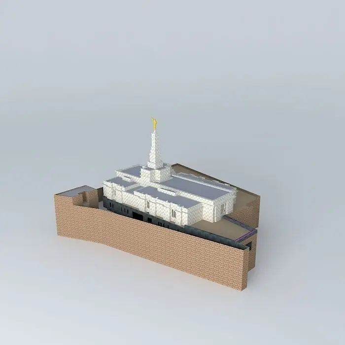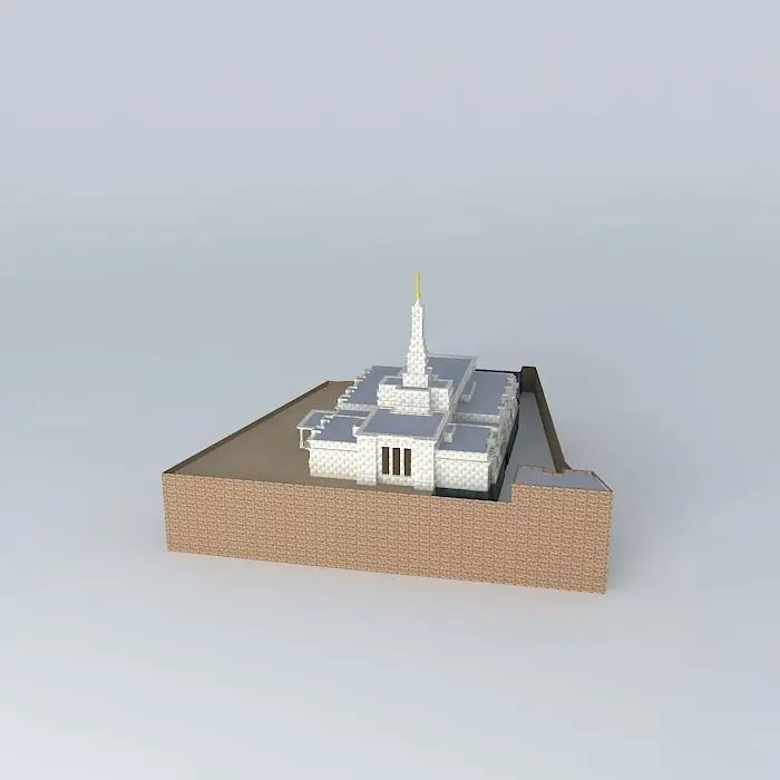 This 3D model was originally created with Sketchup 8 and then converted to all other 3D formats. Native format is .skp 3dsmax scene is 3ds Max 2016 version, rendered with Vray 3.00 Site: 1.25 acres. Exterior Finish: Empress White and Majestic Grey granite from China. Temple Design: Classic modern, single-spire design. Number of Rooms: Two ordinance rooms and two sealing. Total Floor Area: 10,700 square feet. ANNOUNCEMENT; 7 MAY 1998. GROUNDBREAKING AND SITE DEDICATION; 20 MARCH 1999 BY L.LIONEL KENDRICK. PUBLIC OPEN HOUSE; 1-3 JUNE 2000. DEDICATION' 11 JUNE 2000 BY GORDON B. HINCKLEY.