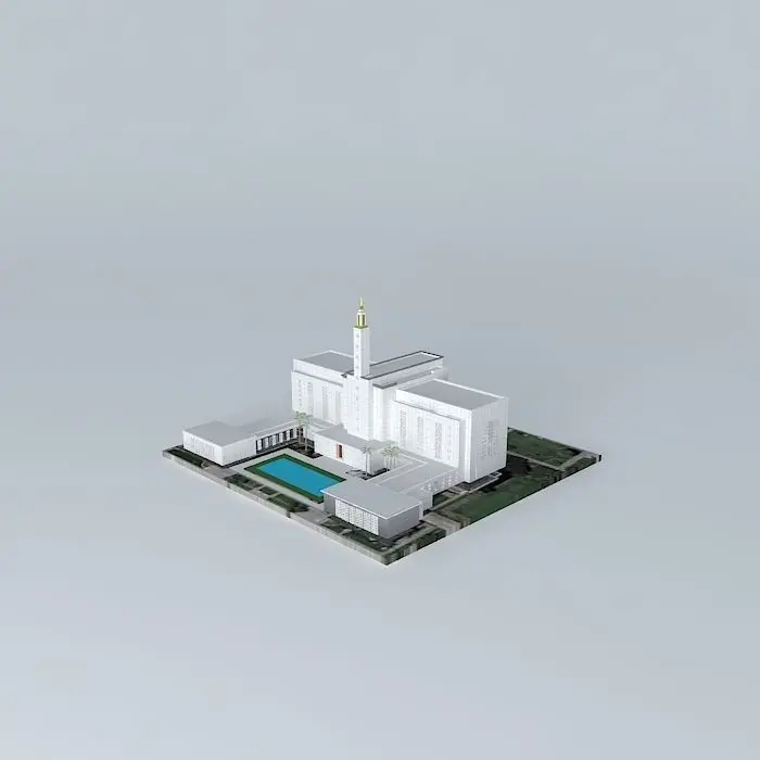 Site: 13 acres. Exterior Finish: Covered with 146,000 square feet of Mo-Sai stone facing, a mixture of crushed quartz and white Portland cement quarried in Utah and Nevada. The wainscot around the exterior is Rockville granite from Minnesota. Temple Design: Modern, single-tower design. Number of Rooms: Four progressive-style ordinance rooms and ten sealing. Total Floor Area: 190,614 square feet.