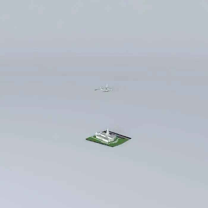 This 3D model was originally created with Sketchup 8 and then converted to all other 3D formats. Native format is .skp 3dsmax scene is 3ds Max 2016 version, rendered with Vray 3.00 Site: 31,466 square meters. Exterior Finish: White granite from Vermont. Temple Design: Classic modern, single-spire design. Number of Rooms: Two ordinance rooms and two sealing. Total Floor Area: 16,498 square feet.