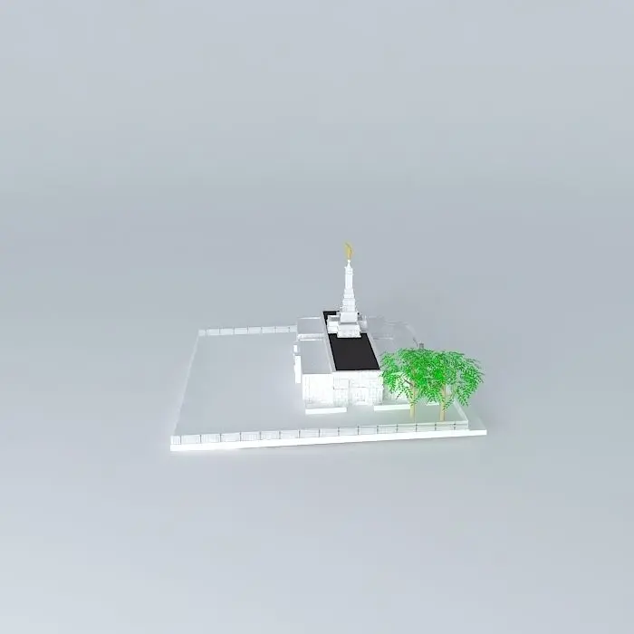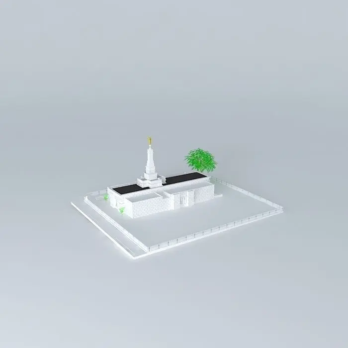 This 3D model was originally created with Sketchup 8 and then converted to all other 3D formats. Native format is .skp 3dsmax scene is 3ds Max 2016 version, rendered with Vray 3.00 Site: 1.59 acres. Exterior Finish: Asa branca granite. Temple Design: Classic modern, single-spire design. Number of Rooms: Two ordinance rooms and two sealing. Total Floor Area: 10,700 square feet